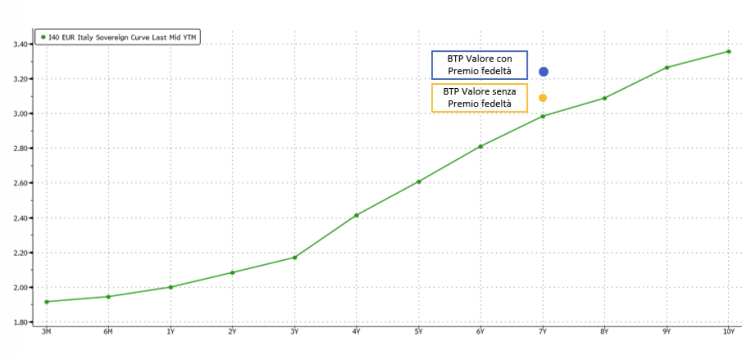 Il nuovo BTP Valore risulta quindi leggermente più interessante, con un differenziale di circa 15-25 punti base a seconda che si consideri o meno il premio fedeltà.